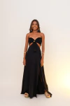 Vestido longo com fenda, a parte do busto possui lastex e amarração no pesocoço, podendo ser usada separadamente.
